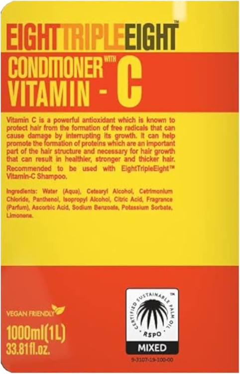 **نرمکننده EIGHT TRIPLE EIGHT ویتامین C** یک محصول فوقالعاده برای تقویت، آبرسانی و درخشان کردن موها است. این نرمکننده با فرمولاسیون غنی و خاص خود، ضمن تغذیه عمیق موها، باعث افزایش شفافیت و لطافت آنها میشود. حجم 1000 میلیلیتری این محصول آن را به گزینهای مقرونبهصرفه و مناسب برای استفاده طولانیمدت تبدیل کرده است.